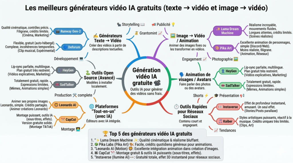 Ces outils — accessibles gratuitement ou en freemium — offrent une opportunité unique d’explorer la création vidéo par IA, sans barrière technique ni investissement lourd.